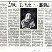 «Когда я приехала сюда, Отар Михайлович (О. М. Дадишкилиани – главный балетмейстер – примечание автора) уехал на постановку. Осталась я и инспектор балета Всеволод Соломонович Криворуцкий. Все! Больше никого из руководства не было. Мне пришлось брать на себя организацию репетиций, изучать тексты и так далее. А ведь текст балета записать невозможно. Пусть меня как угодно убеждают, но это невозможно! Можно записать схему движений, но эмоциональность, умение передать образы, это невозможно сделать. Ведь все еще зависит от индивидуальности артиста. Каждый спектакль – это новое произведение, это новое состояние солиста», – рассказывала Тамара Борисовна.