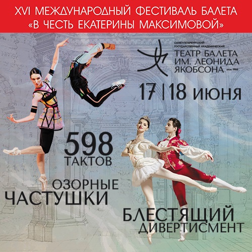 17 и 18 июня впервые в Челябинске выступит Санкт-Петербургский государственный академический театр балета имени Леонида Якобсона. Коллектив исполнит три одноактных балета: «598 тактов» на музыку Карла Филиппа Эммануила Баха – номинант на премию «Золотая маска», «Озорные частушки» на музыку Родиона Щедрина в постановке заслуженного деятеля искусств России Вячеслава Самодурова, «Блестящий Дивертисмент» на музыку Михаила Глинки в хореографии основателя театра, заслуженного деятеля искусств РСФСР Леонида Якобсона. Хореограф задумал этот балет как своего рода диалог с балетмейстерами минувших времен, наследником которых он себя ощущал. Внимательному зрителю в «Блестящем дивертисменте» открываются богатство и безграничные возможности классики. Выступление пройдет в сопровождении фонограммы.