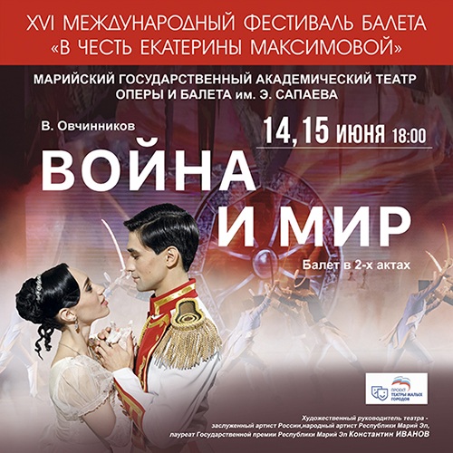 14 и 15 июня программу продолжит спектакль «Война и мир» Марийского государственного академического театра оперы и балета имени Эрика Сапаева в хореографической редакции Константина Иванова. Балет композитора Вячеслава Овчинникова, основанный на романе-эпопее Льва Толстого, пронизан верой и любовью, объединяющей поколения и времена. Театр приглашает перелистать страницы великого романа: десятки коротких сцен с точным соблюдением хронологии следуют одна за другой. Выступление пройдет в сопровождении оркестра Марийского государственного академического театра оперы и балета имени Эрика Сапаева.