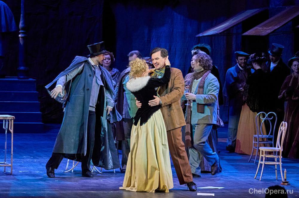 Впервые челябинский театр обратился к опере «Богема» в 1969 году. Всего было четыре постановки, премьера последней состоялась в 2019-м. Спектакль был создан на основе декораций, костюмов и реквизита, подаренных Большим театром. Режиссером обновления выступил заслуженный деятель искусств России Вячеслав Стародубцев, художником обновления – Петр Окунев.