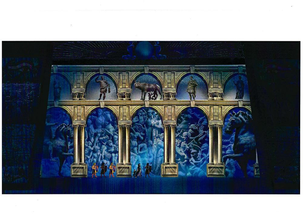 Зрители увидят легендарный Дворец Птолемеев в Александрии, посетят могущественный Рим, станут свидетелями грандиозных битв, парадных шествий, мистических ритуалов. Визуальное решение спектакля предложил заслуженный деятель искусств России Григорий Белов – лауреат премии Москвы, художник-сценограф Государственного Кремлевского Дворца, официальных столичных мероприятий, главный художник театрального института имени Щукина при Государственном академическом театре имени Вахтангова.