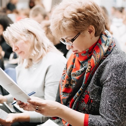 Заведующая электроосветительным цехом Екатерина Долинина рассказывает о своей работе и показывает, как нажатием одной кнопки можно преобразить театральную сцену.