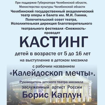 Исполнительная дирекция благотворительного театрального фестиваля «Снежность» совместно с театром оперы и балета им. М. И. Глинки объявляет второй этап прослушиваний в студию детского мюзикла.