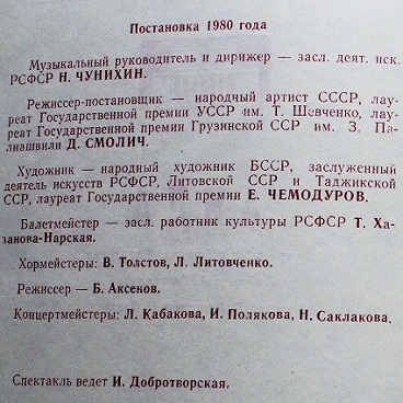 Дирижер-постановщик – Е. Волынский