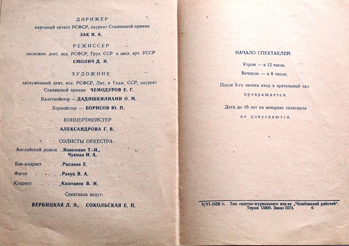 Дирижер-постановщик – народный артист СССР, лауреат Государственной премии СССР И. Зак