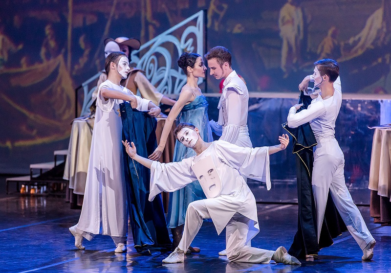Музыкальная основа балета прекрасна — это отрывки из произведений Монтеверди, Моцарта, Листа, Рахманинова, Респиги, Бриттена, Левашкевича. Они связаны в цельное звуковое полотно, которое идеально ложится в хореографическую схему и смысловые повороты сюжета. Два акта спектакля — это ключевые сцены, описанные в романе: бал, где между Анной и Алексеем вспыхивает страсть, сцена на скачках, объяснения с мужем. Особое время уделено и тому периоду, который оправившаяся после болезни Анна проводит с Вронским в Италии — именно там, на карнавале, в окружении масок и смеха, женщина чувствует, что их связь скрывает много подводных течений, которые уносят ее жизнь куда-то не туда.