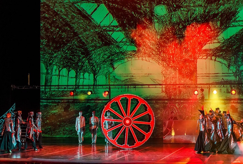 Не хочется спойлерить и раскрывать интригу с роковым поездом. Скажем лишь, что сделано все очень технично, зловеще и красиво. Вообще, декорации в спектакле целиком и полностью соответствуют и букве первоисточника, и стилю постановки. Что касается костюмов, то Анна на балу — конечно, в черном. А в роковые моменты — в красном.