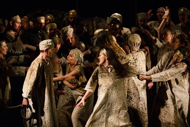 Вообще, хор - главное действующее лицо этой ансамблевой оперы, где на сцене мало что происходит, зато все происходит в звучаниях. По сюжету идет сшибка народов и вер, страсти бушуют, но воплощать все это на сцене с конями и смертями было бы разгулом взбесившегося картонажа - слишком далеки события первого тысячелетия до нашей эры. Волнует - музыка, именно она рождает бездну ассоциаций, соединяя века и народы единым эмоциональным потоком.