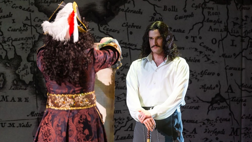 Огромные карты, ниспадающие сверху и становящиеся фоном для важнейших бесед исторического значения, подчеркнут грандиозность постановки, режиссером которой стал заслуженный деятель искусств России Иркин Габитов.